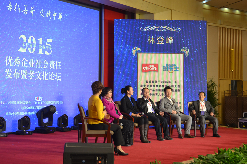 2016年1月17日,由中國(guó)傳統(tǒng)文化促進(jìn)會(huì)、中央電視臺(tái)CCTV頻道和《中華孝道》雜志社共同主辦的“孝行善舉 愛我中華——2015優(yōu)秀企業(yè)社會(huì)責(zé)任發(fā)布暨孝文化論壇”在北京中央電視臺(tái)梅地亞中心隆重舉行。 雀氏集團(tuán)攜旗下成人護(hù)理用品品牌班樂士以優(yōu)秀企業(yè)代表受邀參與了本次活動(dòng)。