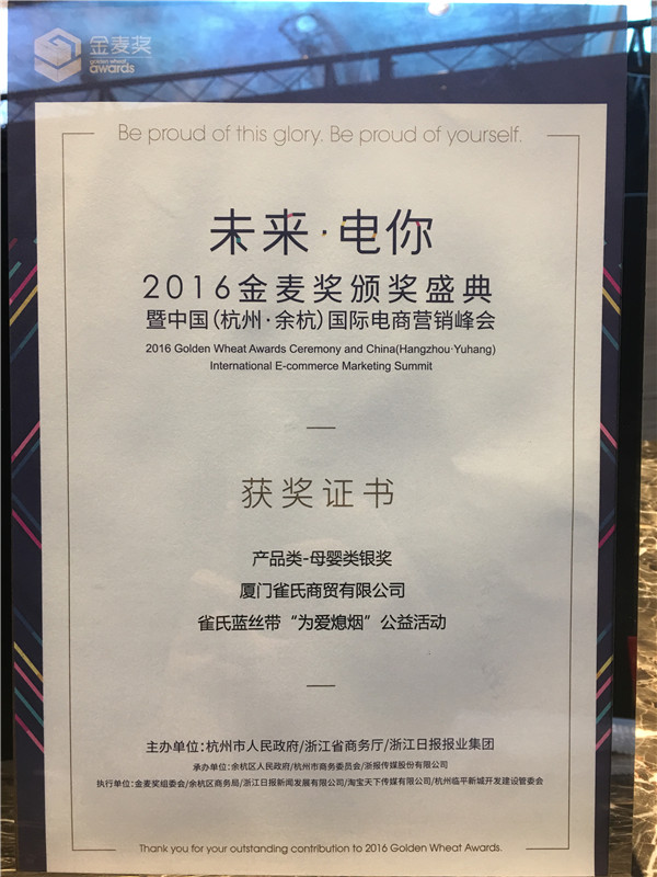 本次活動以“未來·電你”為核心主題,從電商營銷、品牌、數(shù)據(jù)以及跨界創(chuàng)新等多角度解讀“互聯(lián)網(wǎng)+”時代戰(zhàn)略,呈現(xiàn)了一場電商佼佼者間的PK。雀氏在此次巔峰盛宴中斬獲“2016金麥獎母嬰產(chǎn)品類銀獎”