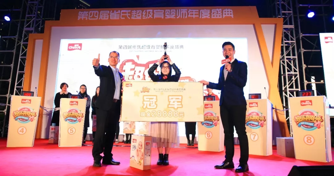 在經(jīng)過【揚帆起航】、【誰將誰點兵】、【誰與爭鋒】、【潮爸潮媽換尿褲比拼】、【王者歸來】5輪激烈論戰(zhàn)后,最終來自福建龍巖的梁文秀選手,憑借儲備全面的育嬰知識和現(xiàn)場機智的反應能力摘得本屆雀氏超級育嬰師桂冠。