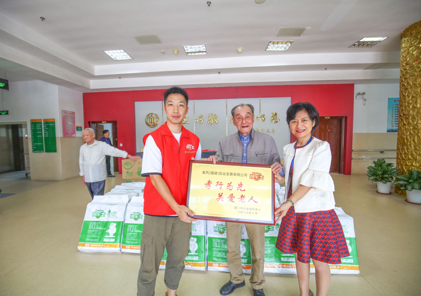 10月18日上午,班樂(lè)士“孝行天下——愛(ài)在重陽(yáng),敬老助老”公益捐贈(zèng)活動(dòng)在廈門(mén)市福利院成功舉行,今年班樂(lè)士已向廈門(mén)市福利院捐贈(zèng)十多萬(wàn)成人護(hù)理用品,福利院授予班樂(lè)士“孝行為先,關(guān)愛(ài)老人”的榮譽(yù)稱號(hào),并表明希望能借助企業(yè)、機(jī)構(gòu)的力量幫助到更多失能老人,通過(guò)群眾的力量盡孝心、獻(xiàn)愛(ài)心,改善失能老人的生活現(xiàn)狀和生命尊嚴(yán)。