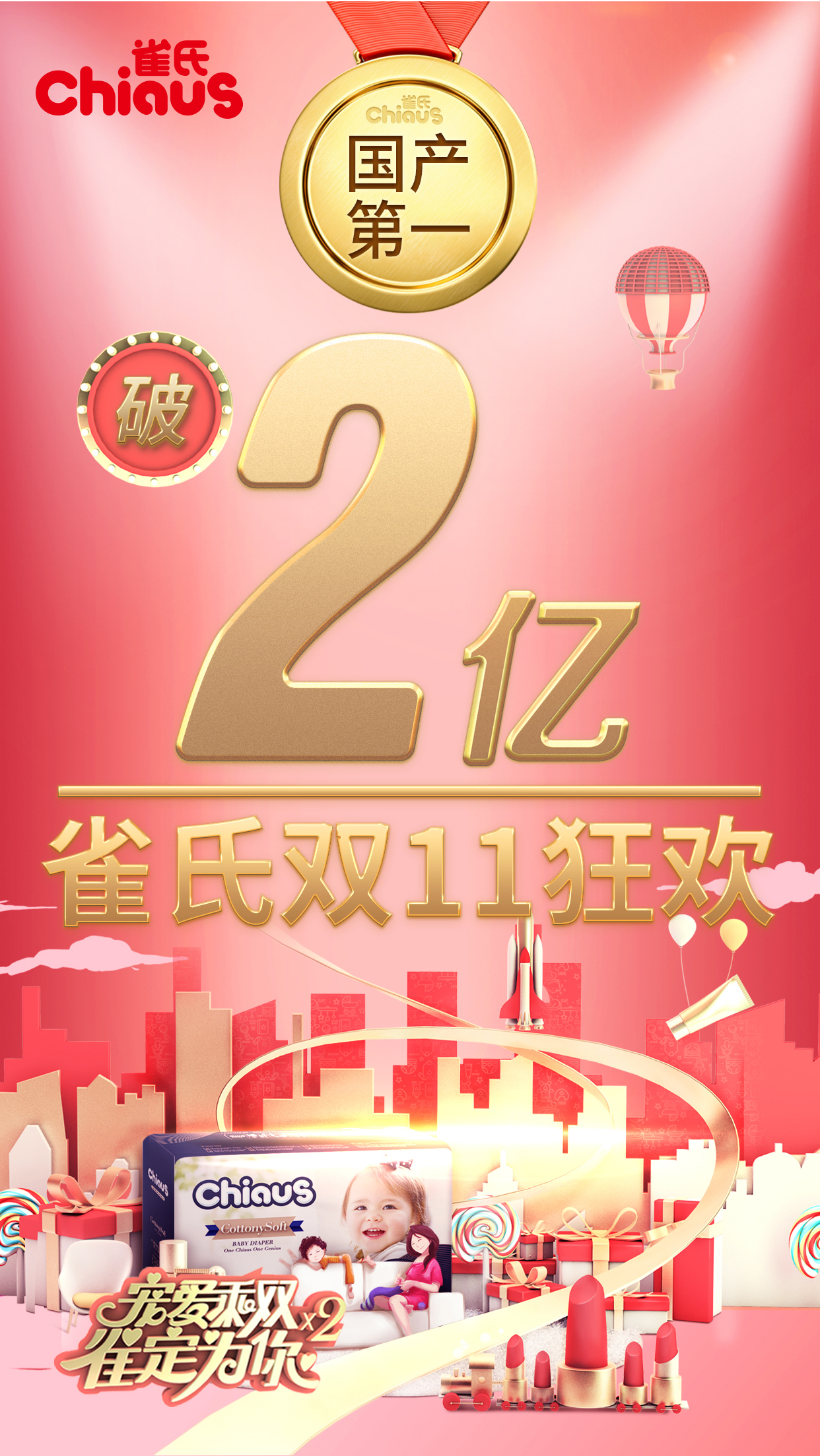 雀氏雙11全網(wǎng)銷售額超2億元,連續(xù)7年獲得國內(nèi)紙尿褲行業(yè)銷量冠軍