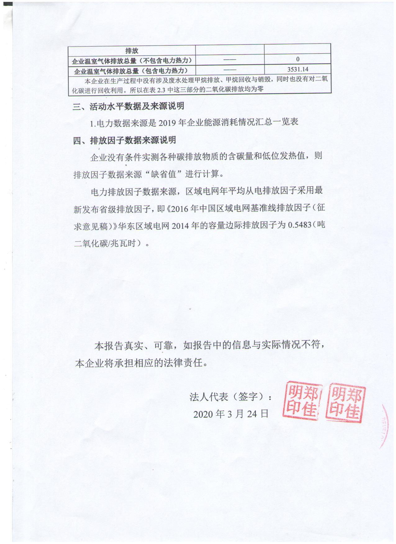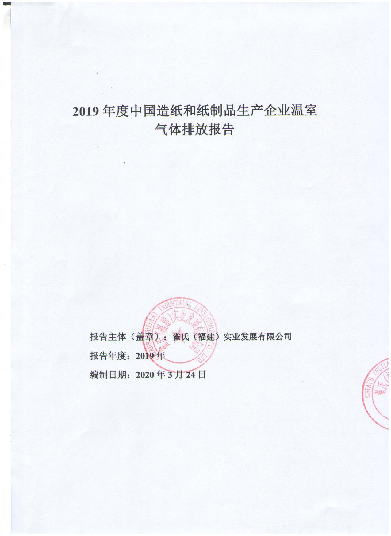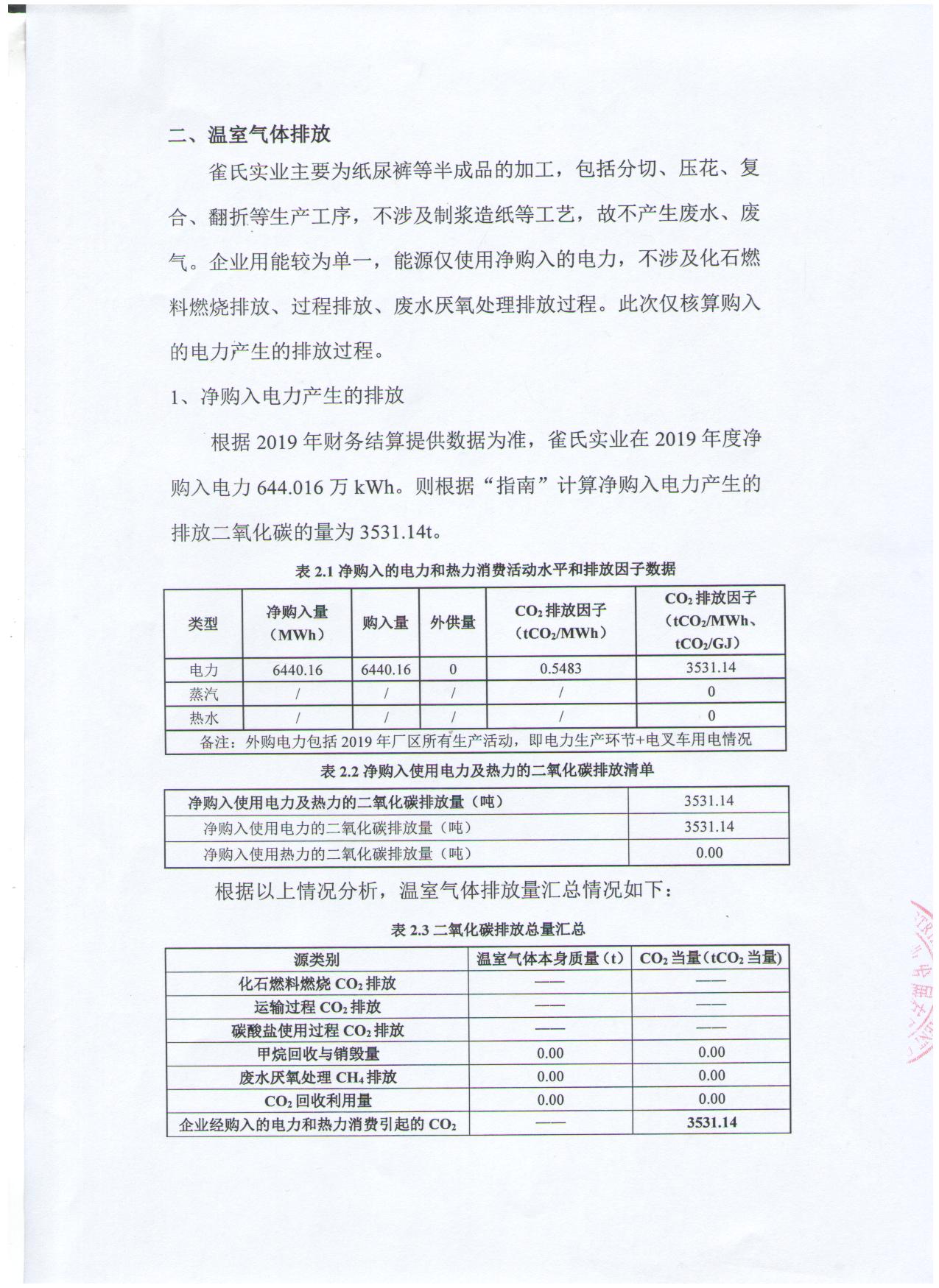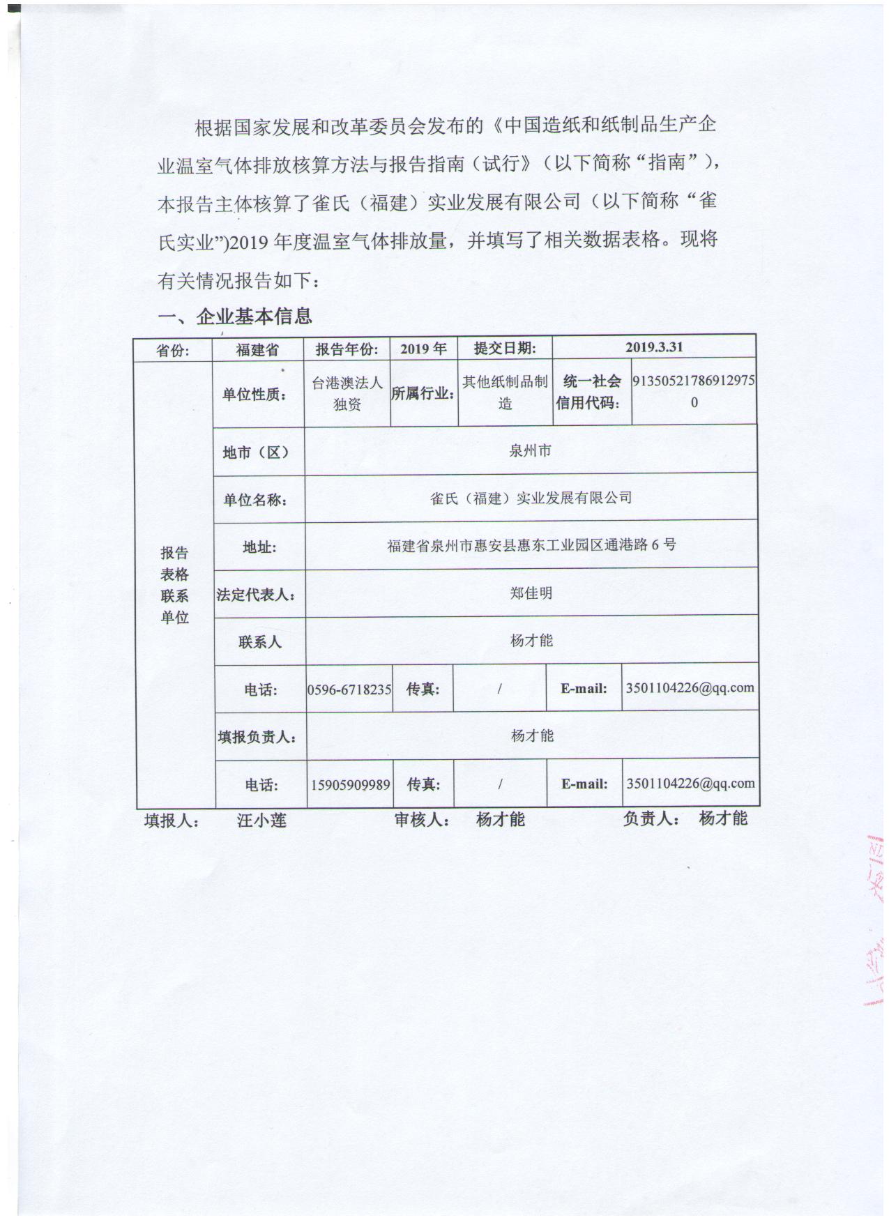 雀氏(福建)實業(yè)發(fā)展有限公司2019年碳排放核查報告