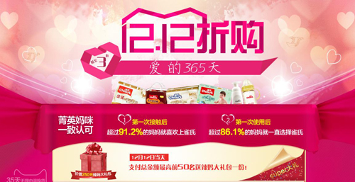 在今年的雙十一活動中,雀氏天貓旗艦店在12小時(shí)內(nèi)就突破了1000萬,創(chuàng)歷史最高;雙十二當(dāng)天雀氏所有直營平臺合計(jì)總銷量達(dá)到:400萬元,紙尿褲類目排名僅次于幫寶適和媽咪寶貝。