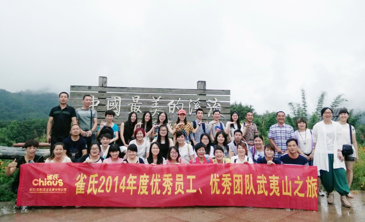 此次武夷山之旅,不僅是對2014年年度優(yōu)秀團(tuán)隊(duì)及個(gè)人的肯定,同時(shí)通過本次游玩,增強(qiáng)了公司員工的凝聚力,充分展現(xiàn)了我司員工良好精神面貌,讓員工以更高的熱情投入到以后的工作中,心往一處共同建設(shè)這個(gè)大家庭。因?yàn)?,我們是一家人;因?yàn)?,我們是雀氏人;因?yàn)橛心銈?,雀氏的明天將更加精彩?br />