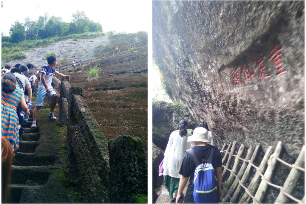 一線天風(fēng)景區(qū)了,是武夷山最具挑戰(zhàn)性的景點(diǎn),由于整個(gè)路線呈攀爬姿勢,不到最后出口并不能感覺到盡頭。最窄的地方只能側(cè)著身緩緩挪動(dòng),伸手不見五指,僅能靠巖壁上景區(qū)管理處安裝上的小燈辨別出腳下的階梯,而身形稍微肥胖的游客甚至要“貼”在墻面上,挪動(dòng)時(shí)能感受到仿佛兩面巖壁在擠壓著身體。游客們在此處經(jīng)常會(huì)害怕其實(shí)最黑暗的時(shí)刻就代表著光明即將來臨。過了那段0.3米的“驚險(xiǎn)”通道,就已經(jīng)能見到微弱的陽光,再往上攀爬過幾個(gè)大階梯,就是武夷山一線天的盡頭處了。走出一線天洞口,見到陽光下武夷山的奇峰怪石,仿佛是獲得了新生一般,心底有一種對生命的無限喜悅。